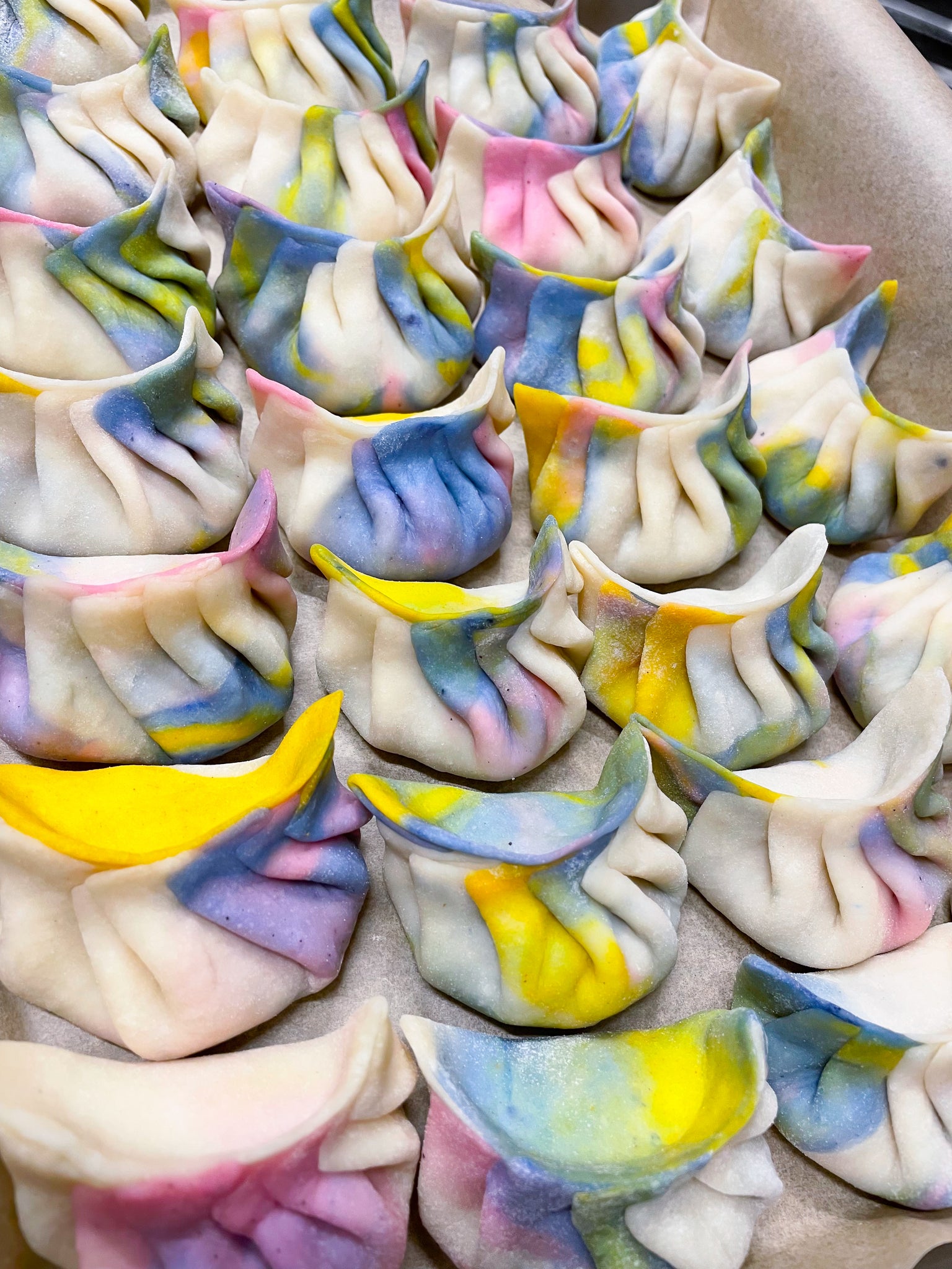 Small batch vegan potstickers handmade in California. Kwong Shop’s Summer Veggie Potstickers are filled with juicy, sweet, smoky, and crunchy veggies, including charred shishito peppers, broccoli, creamed sweet corn, napa cabbage, water chestnuts, and cilantro. All ingredients are sourced from local markets and the wrapper coloring is plant-based and natural. These potstickers pair perfectly with our Chili Crisp No. 5.